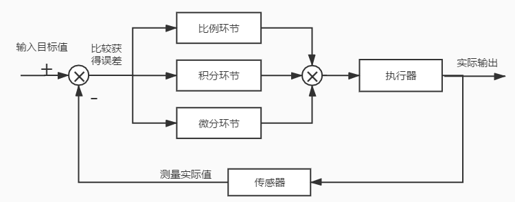 如图,PID控制即对偏差的控制,如果偏差为0,则比例环节不起作用,只有存在偏差时,比例环节才起作用。