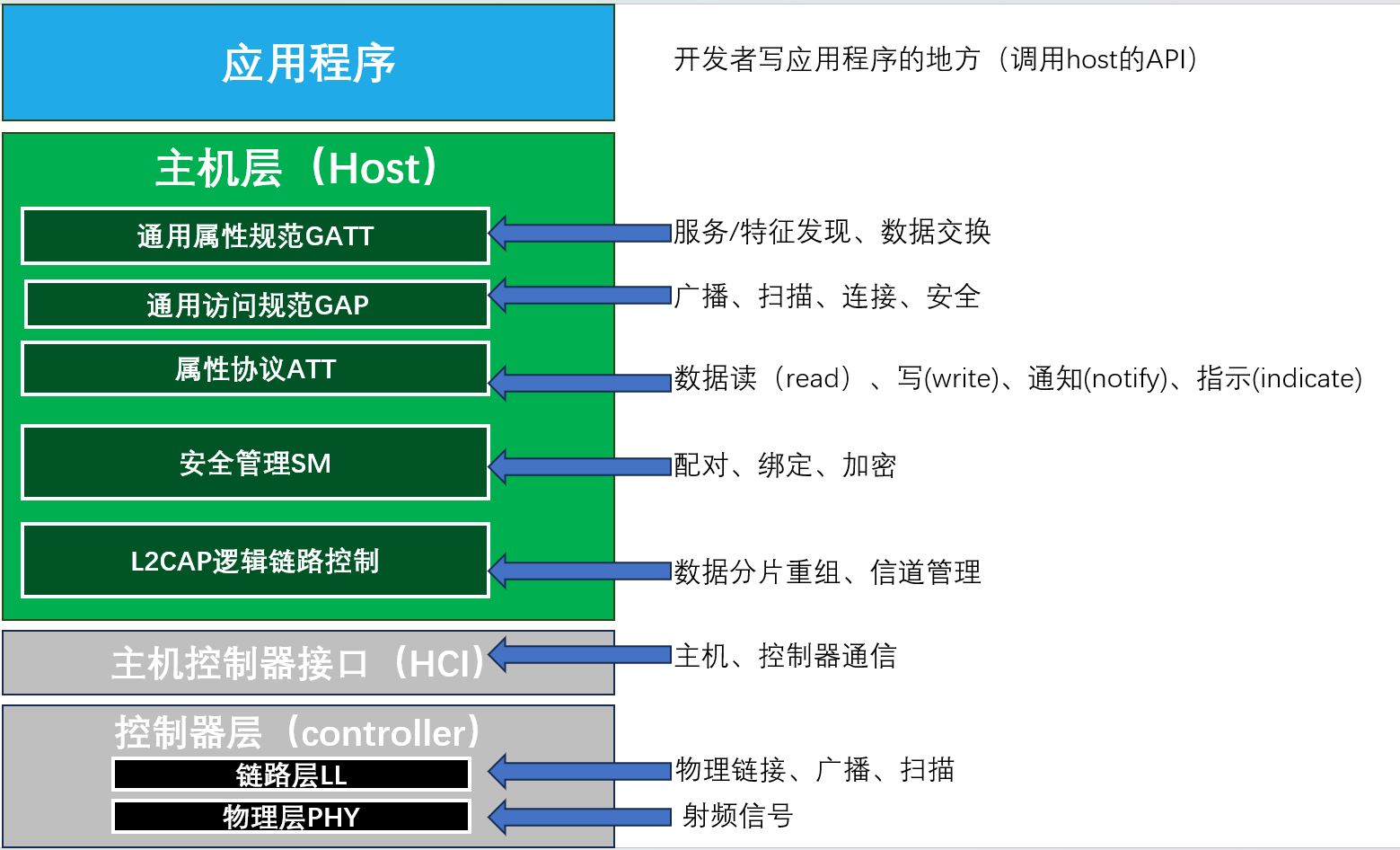 理论:《Bluetooth Core Specification》 4.2/5.4。重点关注 HCI/ATT/GATT/GAP