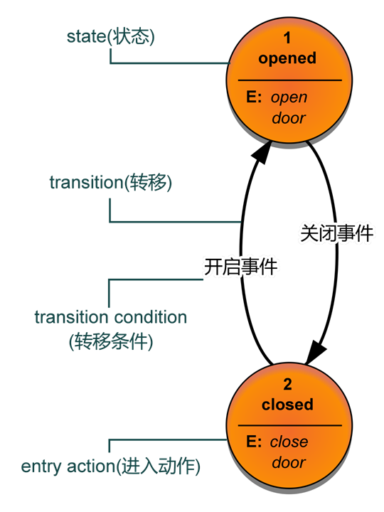 状态机概念: state(状态) 、transition(转移) 、action(动作) 、transition condition(转移条件)